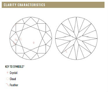 On some GIA reports, clarity characteristics is described with a plotted diagram, with a key to symbols explanation.