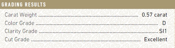 ‘Grading Results’ accurately describes the carat, colour, clarity and cut grade of your diamond, otherwise commonly known as the ‘Four C’s’.