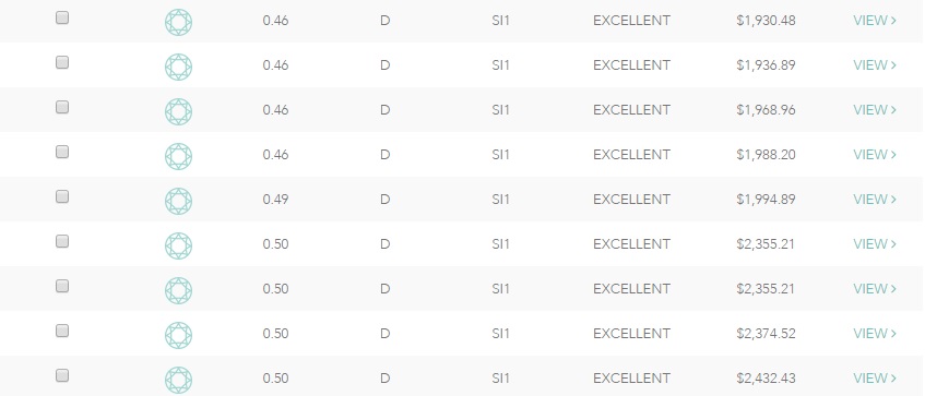 And the same for 0.45ct – 0.50ct D SI1 round diamonds, showing a saving of over $500: